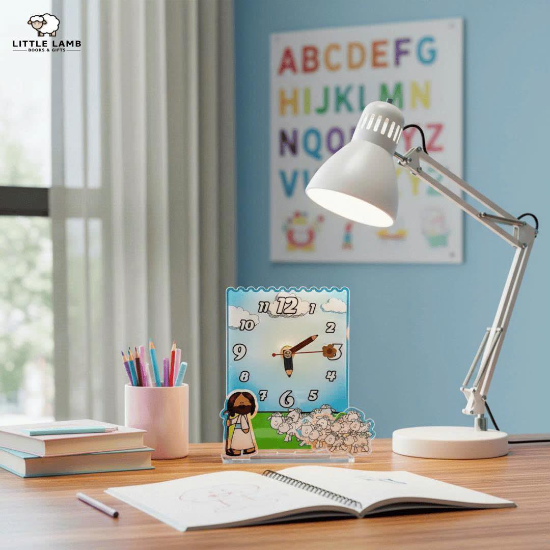 Đồng hồ mica Little Lamb nhỏ xinh, giúp góc học của bé gọn gàng, sáng sủa và có điểm nhấn dễ thương. Hỗ trợ bé tự canh giờ, dễ vào bàn học hơn, từ đó tăng khả năng tập trung và hiệu quả học tập mỗi ngày.